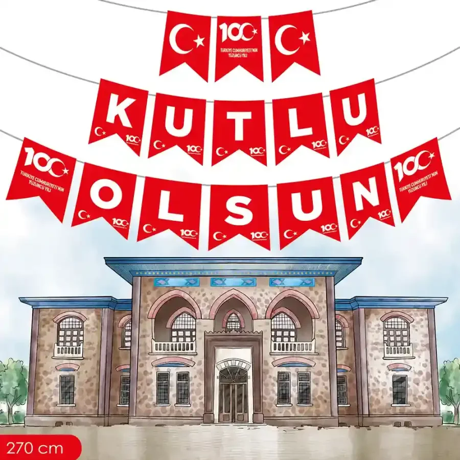 100.Yıl Kutlu Olsun Harf Afiş ile Milli Bayram Coşkusu Yaşayın 100.Yıl Kutlu Olsun harf afiş ile birlikte sınıfları, okul kolidorlarını ve dış mekanları rahatlıkla süsleyebilirsiniz. 100.Yıl Kutlu Olsun Harf Afiş Özellikleri Milli Bayram coşkusu yaşarken tercih edeceğiniz harf afiş modelleri ile dekorasyon hazırlayabilirsiniz. Harika bir bayram ruhu yansıtmak açısından özel olarak üretilen modellere göz atabilirsiniz. Tek Afiş Ölçüsü: 15cm x 19cm Ürün ölçüsü: 270 cm Birinci sınıf malzemeden üretilmektedir. Paket içerisinden ip ve afişler çıkmaktadır. Harf afişleri ipe dizerek, fotoğraftaki görüntüyü elde edebilirsiniz. 100.Yıl Kutlu Olsun Harf Afiş Fotoğraftaki Gibi Mi Gelecek? 100.Yıl Kutlu Olsun harf afiş modelimiz de diğer tüm ürünlerimiz gibi fotoğraftaki görüntünün aynısıdır. Fotoğrafların tümü kendi stüdyolarımızda çekilmekte olup, flaş kaynaklı küçük ton farklılıkları dışında birebir aynı üründür.