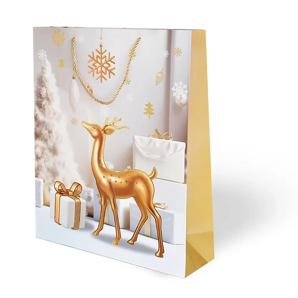 31x40 Lüks Karton Çanta Varak Baskılı -Yılbaşı Temalı-