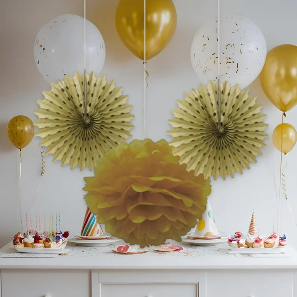 Altın Ponpon / Yelpaze Kağıt Süs Seti ile Parti Ortam Süslemelerini Tamamlayın Altın ponpon / yelpaze kağıt süs seti ile birlikte hem iç mekan hem de dış mekan süsleme yapabilirsiniz. Özel günlerde farklı bir dekorasyon hazırlığı için tercih edebilirsiniz. Altın Ponpon / Yelpaze Kağıt Süs Seti Özellikleri Altın ponpon / yelpaze kağıt süs seti kağıt malzemeden üretilmektedir. Düğün, nişan, doğum günü ve diğer tüm özel partiler için tercih edebilirsiniz. Ponpon süs ölçüsü: 40 cm Petek süs ölçüsü: 30 cm Altın Ponpon / Yelpaze Kağıt Süs Seti Fotoğraftaki Gibi Mi Gelecek? Altın ponpon / yelpaze kağıt süs seti modelimiz de diğer tüm ürünlerimiz gibi fotoğraftaki görüntünün aynısıdır. Fotoğrafların tümü kendi stüdyolarımızda çekilmekte olup, flaş kaynaklı küçük ton farklılıkları dışında birebir aynı üründür.