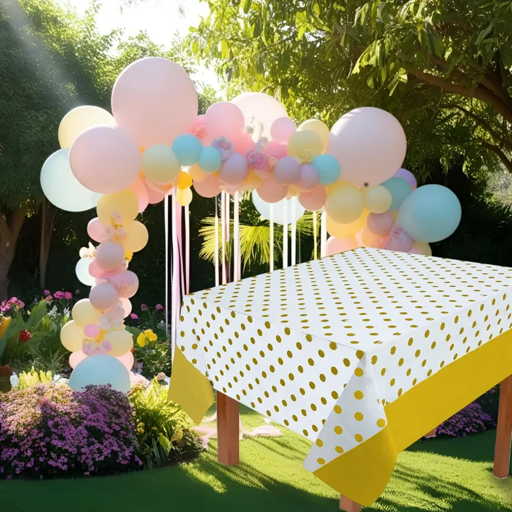 Altın Puantiyeli Plastik Masa Örtüsü ile Dekorasyona Hareket Katın Altın puantiyeli plastik masa örtüsü ile harika bir sofra düzeni oluşturabilirsiniz. Parti sofrası hazırlığında masa düzeni son derece önemlidir. Masa örtüsü tercih ederek özel bir görüntü elde edebilirsiniz. Altın Puantiyeli Plastik Masa Örtüsü Özellikleri Harika renk tonu ile üretilen plastik masa örtüleri, masa dekorasyonun daha iyi durmasında yardımcıdır . Altın puantiyeli plastik masa örtüsü ölçüsü 137x182 cm'dir. Kaliteden ödün verilmeden hazırlanmış olup, sağlık açısından bir zararı kayda geçmemiştir. Standart büyüklükteki dikdörtgen masaları kaplar, lekelere ve çizilmelere karşı korur. Parti masası için benzer renkte parti ürünleri ile birlikte kullanabilirsiniz. Organizasyonlarda özel bir konsept oluşturmak açısından parti masasında uyumlu olan modelleri bir arada kullanmalısınız. Altın Puantiyeli Plastik Masa Örtüsü Fotoğraftaki Gibi Mi Gelecek? Altın puantiyeli plastik masa örtüsü modelimiz de diğer tüm ürünlerimiz gibi fotoğraftaki görüntünün aynısıdır. Fotoğrafların tümü kendi stüdyolarımızda çekilmekte olup, flaş kaynaklı küçük ton farklılıkları dışında birebir aynı üründür.