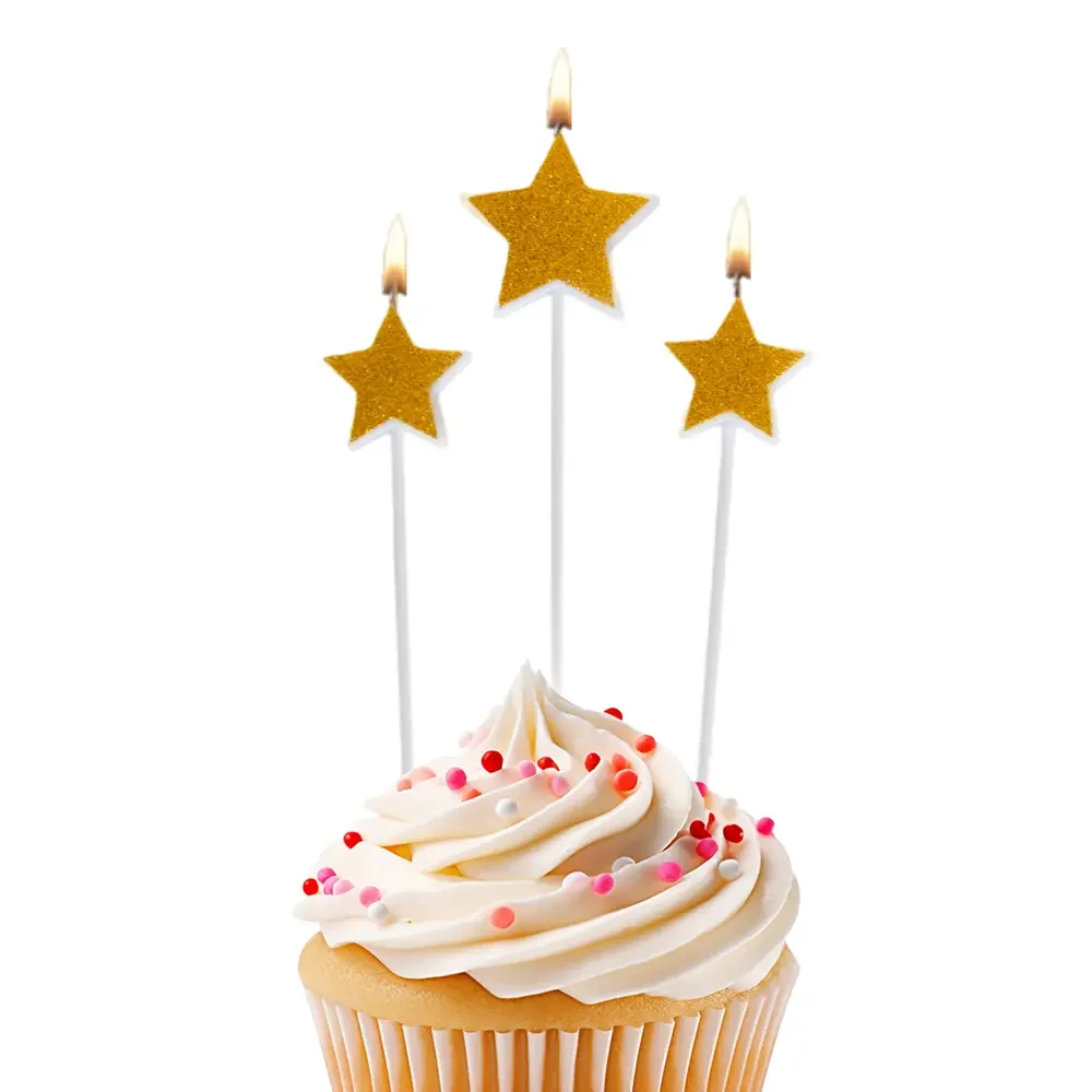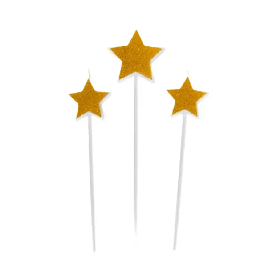 Altın Yıldızlar Mum Seti ile Pasta Süslemelerini Tamamlayın Altın yıldızlar mum seti ile birlikte pasta süsleme hazırlıkları yapabilirsiniz. Altın Yıldızlar Mum Seti Özellikleri Altın yıldızlar mum seti çubuk üzerinde duran parlak yıldızlar ile üretilmiştir. 2 küçük ve 1 büyük yıldızdan oluşan set ilgi çekici pasta süslemeleri yapmak açısından tercih edilir. Büyük yıldız ölçüsü: 4,5 cm; çubuk dahil: 15 cm Küçük yıldız ölçüsü: 3,5 cm; çubuk dahil: 14 cm Altın Yıldızlar Mum Seti Fotoğraftaki Gibi Mi Gelecek? Altın yıldızlar mum seti modelimiz de diğer tüm ürünlerimiz gibi fotoğraftaki görüntünün aynısıdır. Fotoğrafların tümü kendi stüdyolarımızda çekilmekte olup, flaş kaynaklı küçük ton farklılıkları dışında birebir aynı üründür.