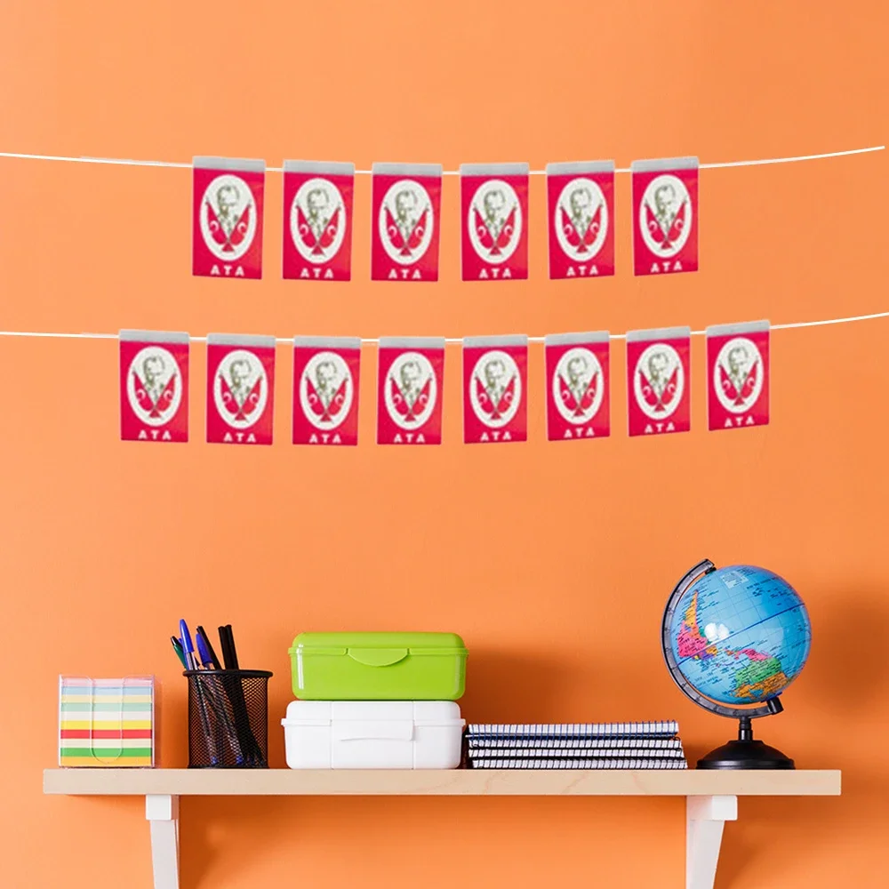 Ata Mini Boy İpli Bayrak ile Milli Bayram Coşkusu Yaşayın Ata mini boy ipli bayrak ile milli bayram coşkusunu yaşayabilirsiniz. Hem iç mekanda hem de dış mekanda süslemelerde yer verebilirsiniz. Ata Mini Boy İpli Bayrak Özellikleri Milli Bayram coşkusu yaşarken tercih edeceğiniz Bayrak modelleri ile dekorasyon hazırlayabilirsiniz. Harika bir bayram ruhu yansıtmak açısından özel olarak üretilen modellere göz atabilirsiniz. Tek Bayrak Boyutları: 6cm x 10cm Uzunluk: toplam uzunluk yaklaşık 3,5 metre. Malzeme: Kağıt Pakette 50 adet mini boy bayrak yer almaktadır. Ata Mini Boy İpli Bayrak Fotoğraftaki Gibi Mi Gelecek? Ata mini boy ipli bayrak modelimiz de diğer tüm ürünlerimiz gibi fotoğraftaki görüntünün aynısıdır. Fotoğrafların tümü kendi stüdyolarımızda çekilmekte olup, flaş kaynaklı küçük ton farklılıkları dışında birebir aynı üründür.