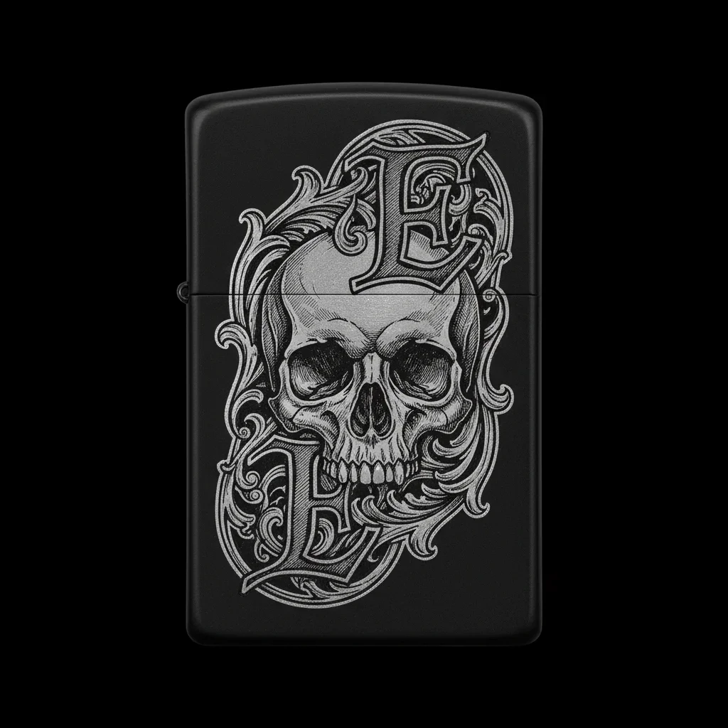 Benzinli Çakmak Kuru Kafa Figürlü E Harfli Tasarım - V69