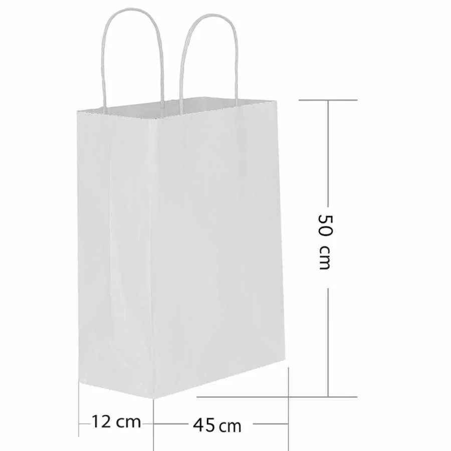 Beyaz Büküm Saplı Kraft Çanta 45x50cm