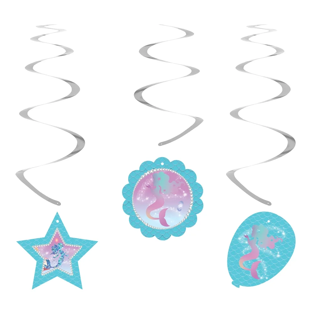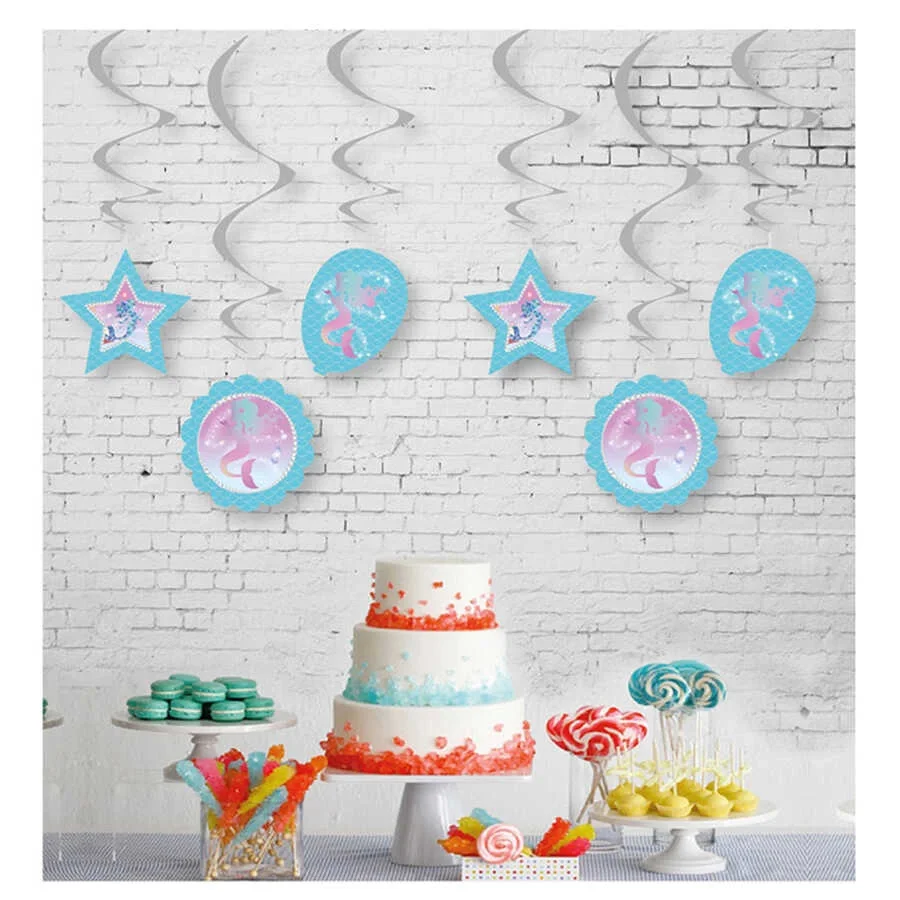 Deniz Kızı Spiral Sarkıt Süs • Ürün Ölçüsü: Bulut Süs: ( 16,5 x 16,8 cm )x2 Yıldız Süs: ( 16,4 x 15,6 cm )x2 Balon Süs: ( 13,7 x 15,4 cm )x2 Spiral: 60 cm • Materyal : Kağıt • Paket İçi Miktar : 6 Adet