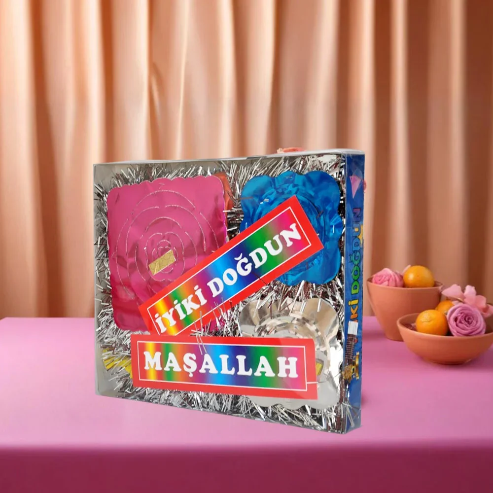 Doğum Günü & Sünnet Süs Seti ile Organizasyonlara Hareket Katın Doğum günü ve sünnet süs seti ile birlikte organizasyonlar çok daha hareketli ve ilgi çekici olacaktır. Doğum Günü & Sünnet Süs Seti Özellikleri Doğum günü süs seti ortam süslemesi yaparken ihtiyaç duyabileceğiniz bir çok farklı ürünü barındırır. 1 adet İyi ki doğdun ve 1 adet Maşallah yazılı pankart 1 adet büyük avize 1 adet küçük avize 2 adet metalik uzar süs 2 adet balon 1 adet muhtelif kalın sim NOT: Ürün içerik ve adet özelliklerinde değişiklik olabilir. Doğum Günü Süs Seti Fotoğraftaki Gibi Mi Gelecek? Doğum günü süs seti modelimiz de diğer tüm ürünlerimiz gibi fotoğraftaki görüntünün aynısıdır. Fotoğrafların tümü kendi stüdyolarımızda çekilmekte olup, flaş kaynaklı küçük ton farklılıkları dışında birebir aynı üründür.