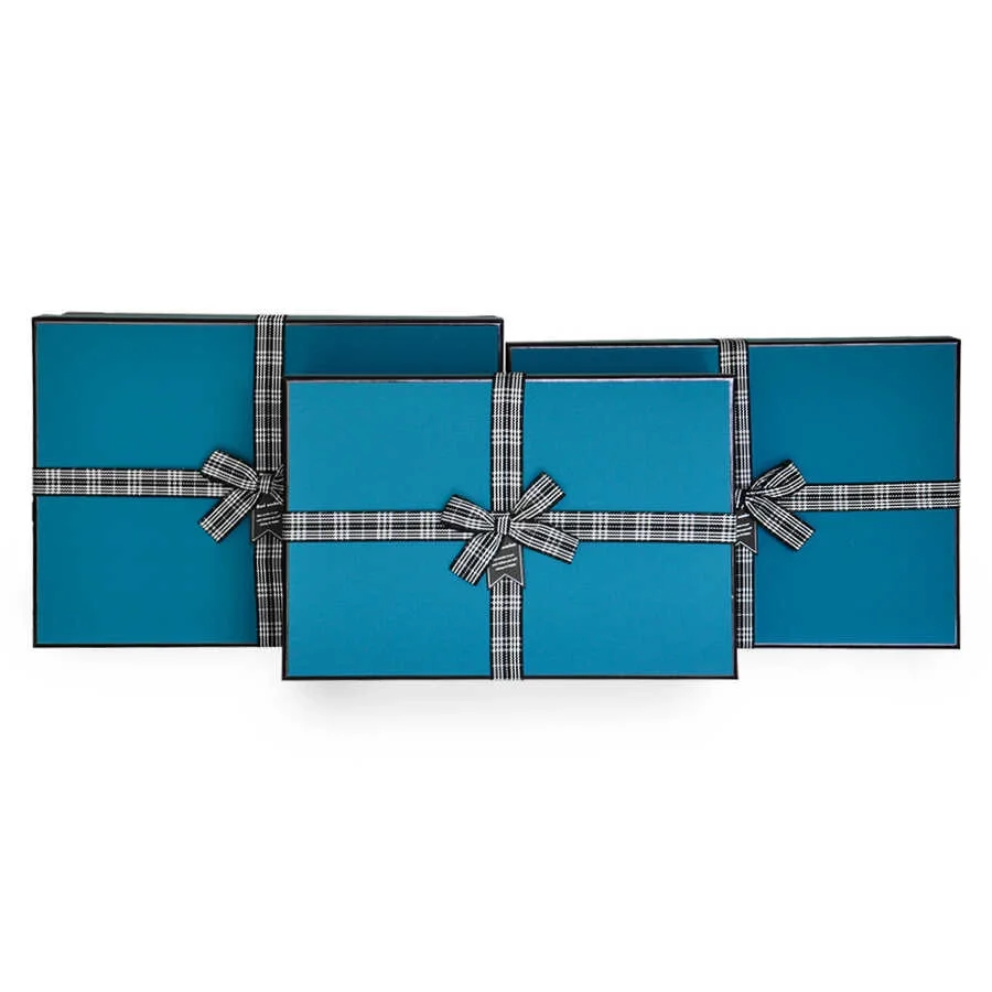 Ekose Kurdeleli Hediye Kutusu 3lü