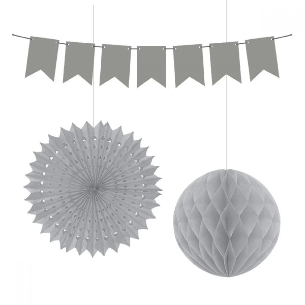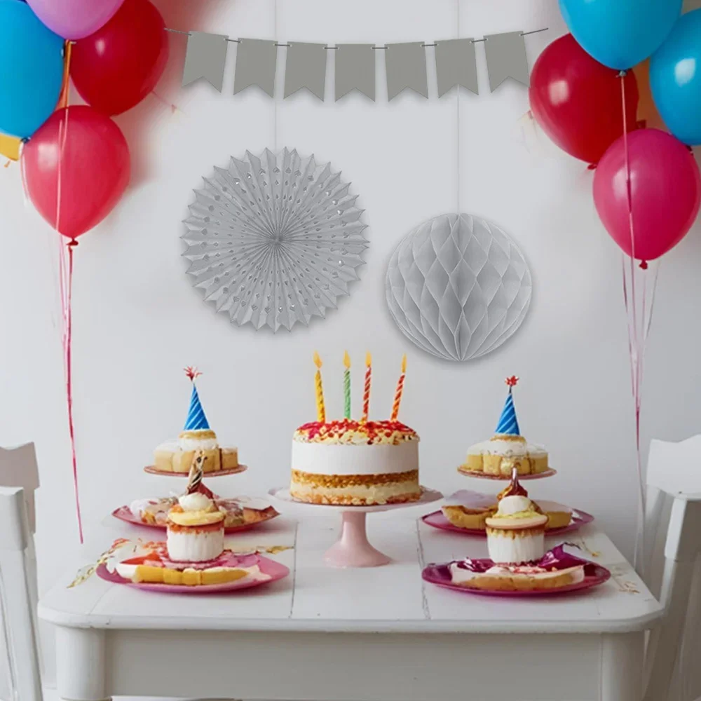 Gümüş Kağıt Süs Seti ile Parti Ortam Süslemelerini Tamamlayın Gümüş kağıt süs seti ile birlikte hem iç mekan hem de dış mekan süsleme yapabilirsiniz. Özel günlerde farklı bir dekorasyon hazırlığı için tercih edebilirsiniz. Gümüş Kağıt Süs Seti Özellikleri Gümüş kağıt süs seti kağıt malzemeden üretilmektedir. Düğün, nişan, doğum günü ve diğer tüm özel partiler için tercih edebilirsiniz. 2 metre ip üzerinde 12 adet afiş bulunur. Yelpaze süs ölçüsü: 40 cm Petek süs ölçüsü: 30 cm Gümüş Kağıt Süs Seti Fotoğraftaki Gibi Mi Gelecek? Gümüş kağıt süs seti modelimiz de diğer tüm ürünlerimiz gibi fotoğraftaki görüntünün aynısıdır. Fotoğrafların tümü kendi stüdyolarımızda çekilmekte olup, flaş kaynaklı küçük ton farklılıkları dışında birebir aynı üründür.
