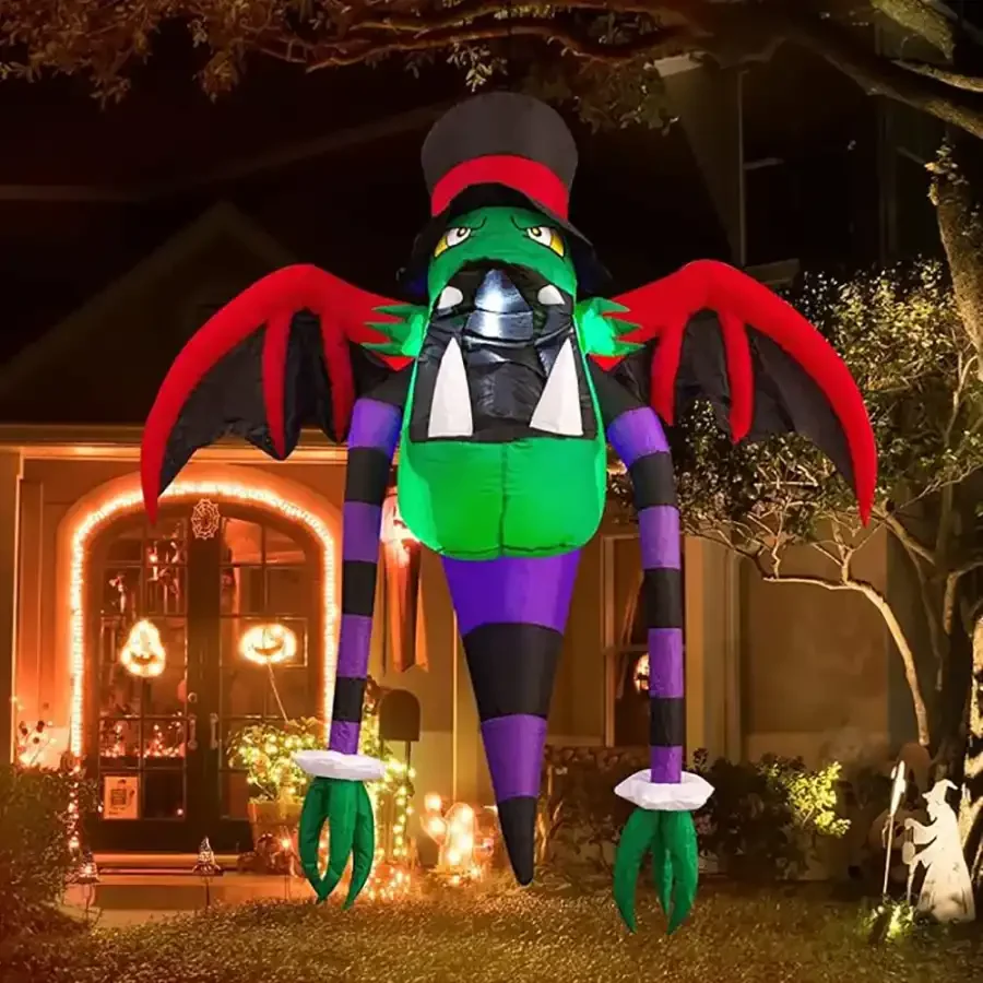 Halloween Şişme Dekor ile Dekorasyona Korku Katın Halloween şişme dekor mağaza ya da restoran önlerinde ve bahçelerde kullanabileceğiniz özel bir tasarımdır. Halloween Şişme Dekor Özellikleri Halloween şişme dekor özel olarak üretilmiştir. Standart bir elektrik prize takarak fan ile kendiliğinden şişer. Paket içeriğinde sönük halde korkunç şişme dekor, kolay kurulum için ihtiyaç duyulan bağlantı parçaları ve fan yer alır. Led ışık bulundurur. Ölçü: Yükseklik: 160cm; En: 160cm