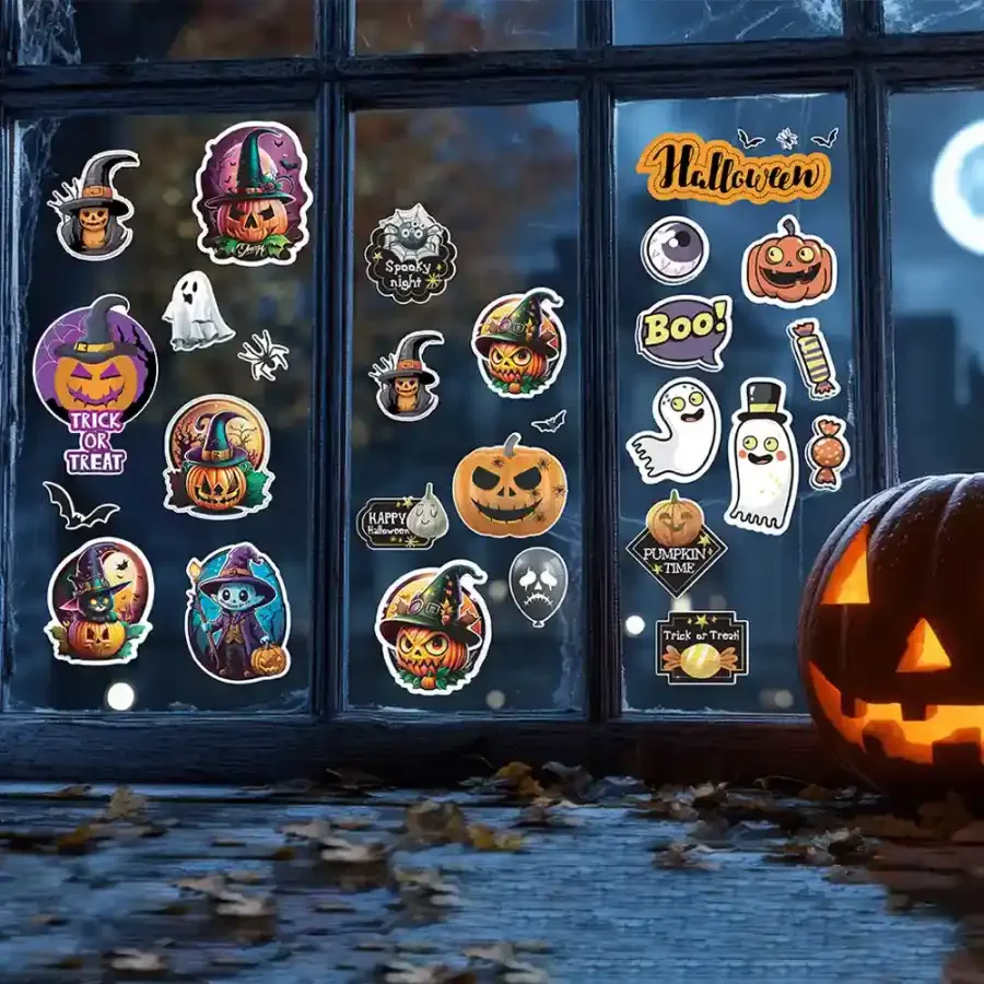 Dekoratif Sticker Seti - Halloween Halloween dekoratif sticker seti ile harika süslemeler yapabilirsiniz. 35x50 cm ölçülerinde 2 sayfa sticker yer almaktadır. Sticker boyutları birbirinden farklı olarak hazırlanmıştır. Setimiz özel kesimlidir. Dilediğiniz gibi camınıza ya da duvarınıza yapıştırabilirsiniz. Tüm düz yüzeylerde kullanılabilir. Uygulama öncesinde talimatlar kısmındaki yönergeleri uygulayınız. Temiz ve pürüzsüz her zemine kullanım için uygundur. Kendiliğinden yapışkanlı malzemesi sayesinde zemine kolayca yapışır. Tüm ürünlerimizde sağlığa zararsız boyalar kullanılmaktadır. Çıkarmak istediğinizde fön makinesi ile ya da hafifçe elinizi sürtüp ısıtarak duvarınızdan ya da camınızdan kolayca çıkarabilirsiniz. Talimatlar Sadece pürüzsüz yüzeyler için uygundur. Uygulanacak yüzey temiz ve kuru olmalıdır. Stickerı tabakadan yırtmadan dikkatlice ayırınız. Stickerın ilk olarak üst kısmını yapıştırıp, sonrasında aşağıya doğru yavaşça yapıştırarak ilerleyin.