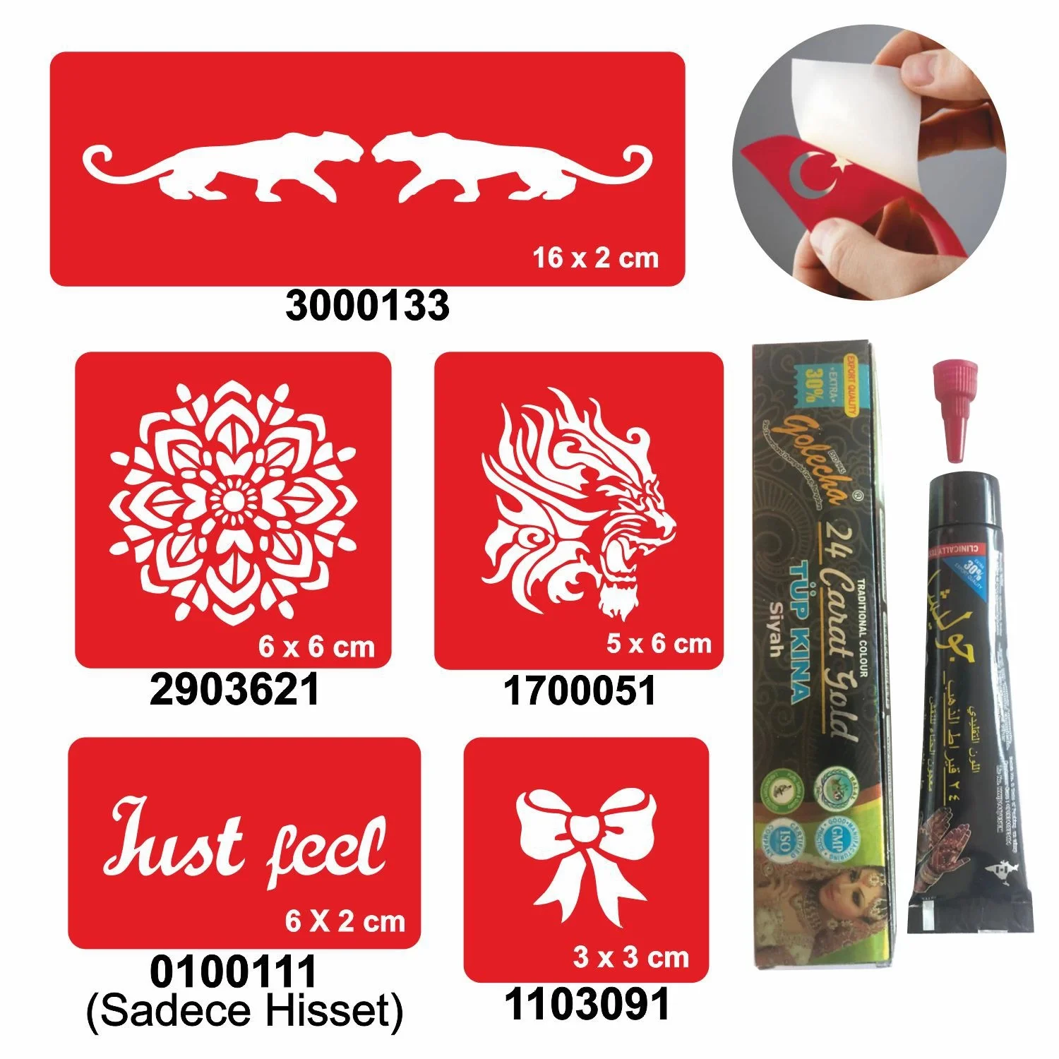 Siparişinizle birlikte  Resimde gösterilen Dövme Şablonları ve 1 Tüp Kına Gönderilir.