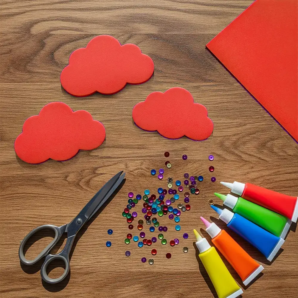 Kırmızı A4 Eva Tabaka Eva tabaka süngerimsi bir yapıya sahip olan esnek ve hafif bir malzemedir. Bu ürünler nemden kolay etkilenmezler. Rahat bir kullanım sunduğu için çocukların el işi çalışmalarında tercih edilir. Eva Tabaka Kullanım Alanları: Okullarda el işi projelerinde, Hobi çalışmaları yaparken, Ambalajlama tercihlerinde, Çeşitli dekorasyon hazırlıklarında kullanıma uygundur.