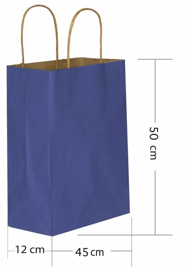 Lacivert Büküm Saplı Kraft Çanta 45x50cm