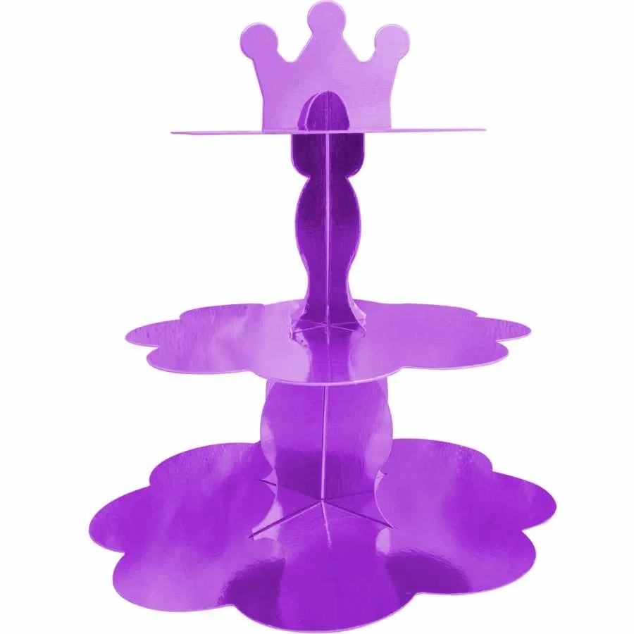 Metalik Mor Cupcake Standı • Organizasyonlarda masa süsleme için tercih edilen metalik mor cupcake standı özel olarak tasarlanmıştır. • Cupcake standı 3 katlıdır. Ürün Ölçüsü: 1. kat: 32 cm 2. kat: 26 cm 3. kat: 20 cm • Materyal : Karton