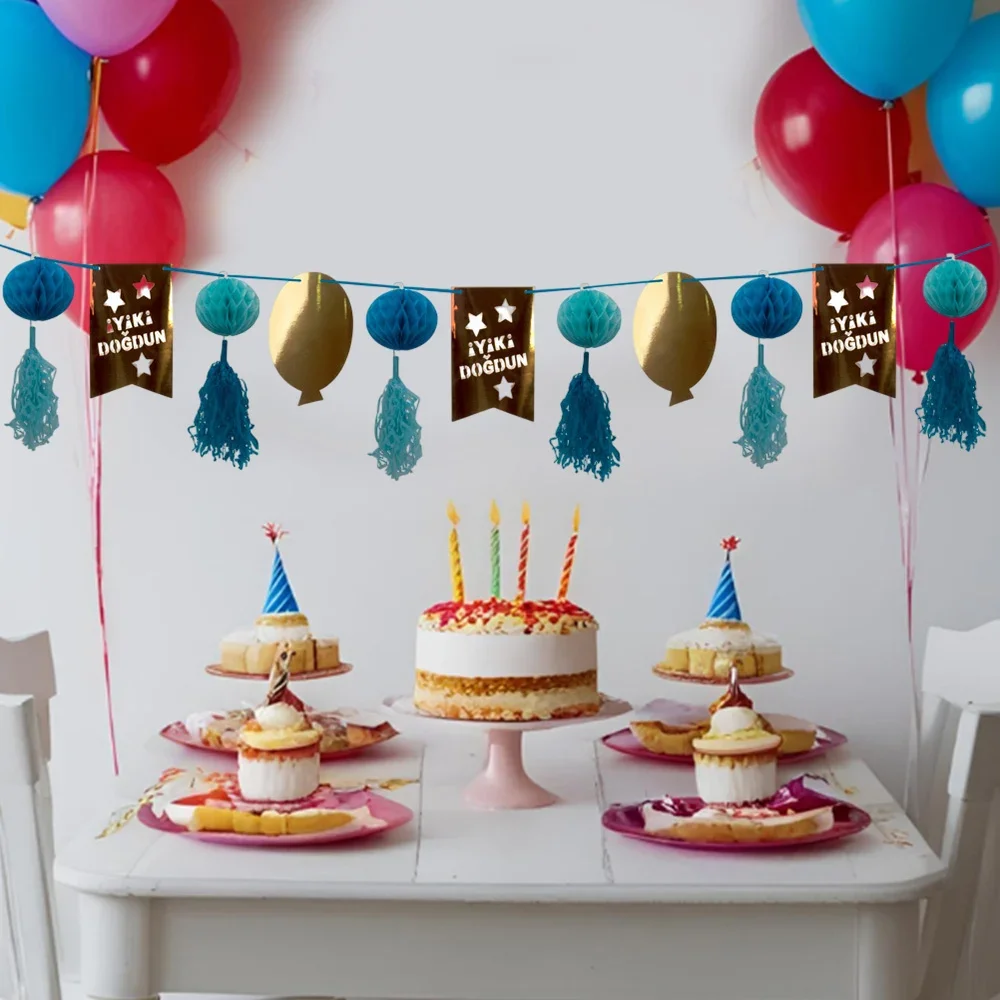 Metalize İyi ki Doğdun Sıralı Banner Süs ile Ortam Süslemelerini Tamamlayın Metalize İyi ki Doğdun sıralı banner süs ile birlikte doğum günü parti dekorasyonlarına bambaşka bir görüntü katabilirsiniz. Özel tasarımı ile farklı bir dekorasyon oluşturmanıza yardımcıdır. Metalize İyi ki Doğdun Sıralı Banner Süs Özellikleri Metalize İyi ki Doğdun sıralı banner süs demonte olarak gönderilmektedir. Paket içerisinde yer alan ipe ürünleri sıralayarak fotoğraftaki görüntüyü elde edebilirsiniz. Petek Süs: ( 30 cm ) x 6 İyi Ki Doğdun Banner: ( 19 x 13,5 cm ) x3 Balon Süs: ( 19 x 13,5 cm ) x2 Toplam uzunluk: 5 metre Metalize İyi ki Doğdun Sıralı Banner Süs Fotoğraftaki Gibi Mi Gelecek? Metalize İyi ki Doğdun sıralı banner süs modelimiz de diğer tüm ürünlerimiz gibi fotoğraftaki görüntünün aynısıdır. Fotoğrafların tümü kendi stüdyolarımızda çekilmekte olup, flaş kaynaklı küçük ton farklılıkları dışında birebir aynı üründür.