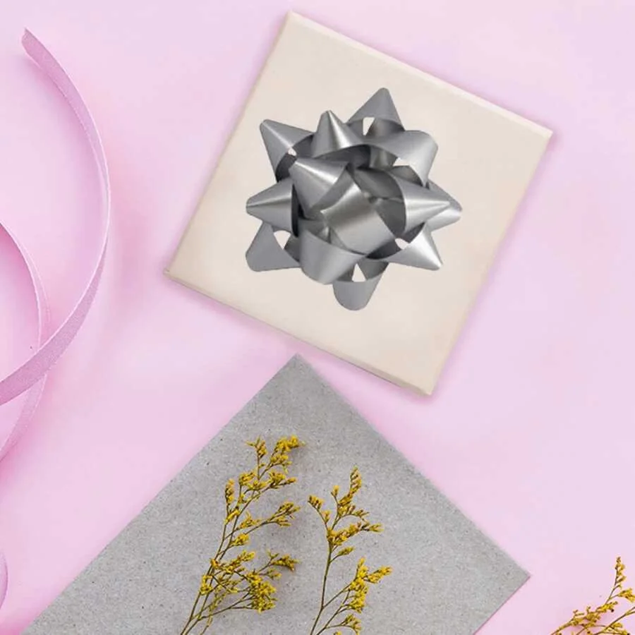 No:2 Gümüş Renkli Mat Metalik Hediye Paketi Süsü Modelleri Gümüş renkli paket süslerini hediye paketlemeleriniz için kullanabilirsiniz. Paket süslerinin arka bölümü yapışkanlıdır, kolaylıkla her yüzeye yapıştırabilirsiniz. No:2 Gümüş Renkli Mat Metalik Hediye Paketi Süsü Özellikleri; Ürün Ölçüsü: 4,5 cm Materyal: Rafya Renk: Mat Metalik Gümüş Paket İçi Miktar:100 Adet