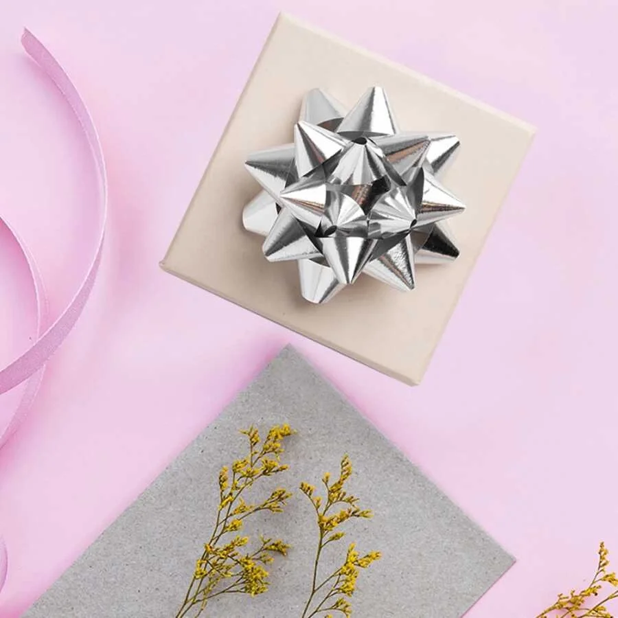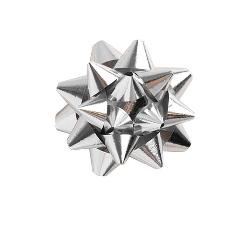 No:2 Gümüş Renkli Metalik Hediye Paketi Süsü Modelleri Gümüş renkli paket süslerini hediye paketlemeleriniz için kullanabilirsiniz. Paket süslerinin arka bölümü yapışkanlıdır, kolaylıkla her yüzeye yapıştırabilirsiniz. No:2 Gümüş Renkli Metalik Hediye Paketi Süsü Özellikleri; Ürün Ölçüsü: 4,5 cm Materyal: Rafya Renk: Metalik Gümüş Paket İçi Miktar:100 Adet