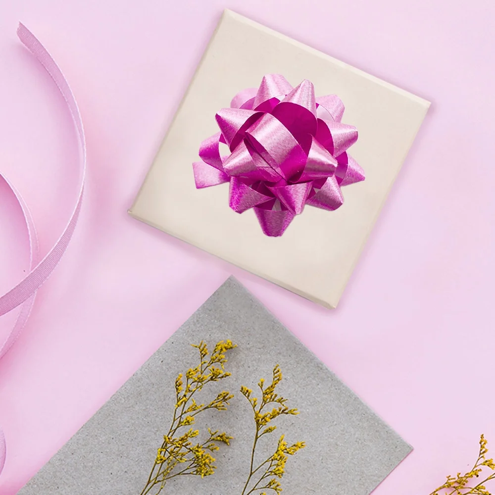 No:2 Pembe Renkli Hediye Paketi Süsü Modelleri Pembe renkli paket süslerini hediye paketlemeleriniz için kullanabilirsiniz. Paket süslerinin arka bölümü yapışkanlıdır, kolaylıkla her yüzeye yapıştırabilirsiniz. No:2 Pembe Hediye Paketi Süsü Özellikleri; Ürün Ölçüsü: 4,5 cm Materyal: Rafya
