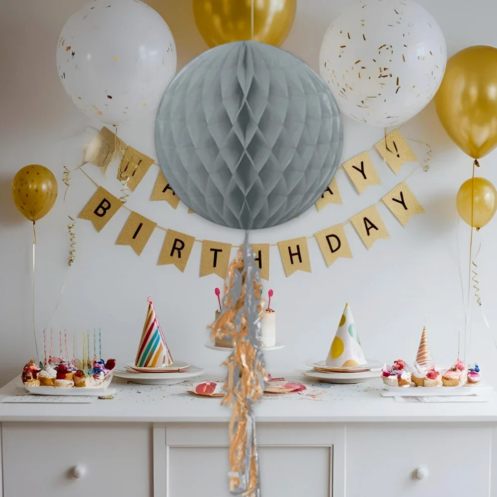Püsküllü Gümüş Petek Kağıt Süs ile Parti Ortam Süslemelerini Tamamlayın Püsküllü gümüş petek kağıt süs ile birlikte doğum günü, nişan, düğün, açılışlar ve diğer tüm organizasyonlarda dekorasyon hazırlığı yapabilirsiniz. Püsküllü Gümüş Petek Kağıt Süs Özellikleri Püsküllü gümüş petek kağıt süs özel tasarımı ile dekorasyonda yer verebileceğiniz bir modeldir. Petek Süs Ölçü: 30 cm Paket içerisinde yer alan ip ile dilediğiniz şekilde dekorasyonda yer verebilirsiniz. Püsküllü Gümüş Petek Kağıt Süs Fotoğraftaki Gibi Mi Gelecek? Püsküllü gümüş petek kağıt süs modelimiz de diğer tüm ürünlerimiz gibi fotoğraftaki görüntünün aynısıdır. Fotoğrafların tümü kendi stüdyolarımızda çekilmekte olup, flaş kaynaklı küçük ton farklılıkları dışında birebir aynı üründür.