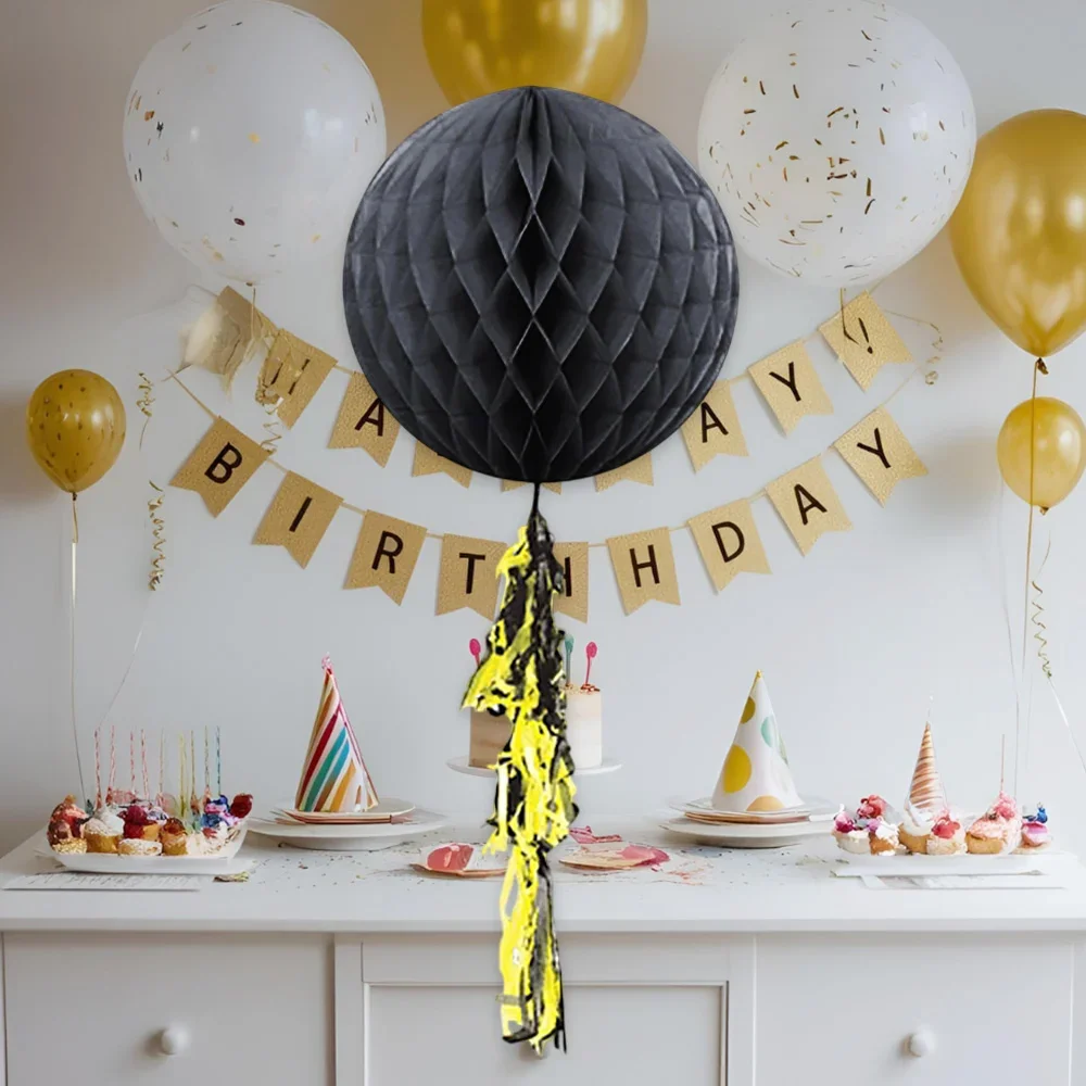 Püsküllü Siyah Petek Kağıt Süs ile Parti Ortam Süslemelerini Tamamlayın Püsküllü siyah petek kağıt süs ile birlikte doğum günü, nişan, düğün, açılışlar ve diğer tüm organizasyonlarda dekorasyon hazırlığı yapabilirsiniz. Püsküllü Siyah Petek Kağıt Süs Özellikleri Püsküllü siyah petek kağıt süs özel tasarımı ile dekorasyonda yer verebileceğiniz bir modeldir. Petek Süs Ölçü: 30 cm Paket içerisinde yer alan ip ile dilediğiniz şekilde dekorasyonda yer verebilirsiniz. Püsküllü Siyah Petek Kağıt Süs Fotoğraftaki Gibi Mi Gelecek? Püsküllü siyah petek kağıt süs modelimiz de diğer tüm ürünlerimiz gibi fotoğraftaki görüntünün aynısıdır. Fotoğrafların tümü kendi stüdyolarımızda çekilmekte olup, flaş kaynaklı küçük ton farklılıkları dışında birebir aynı üründür.