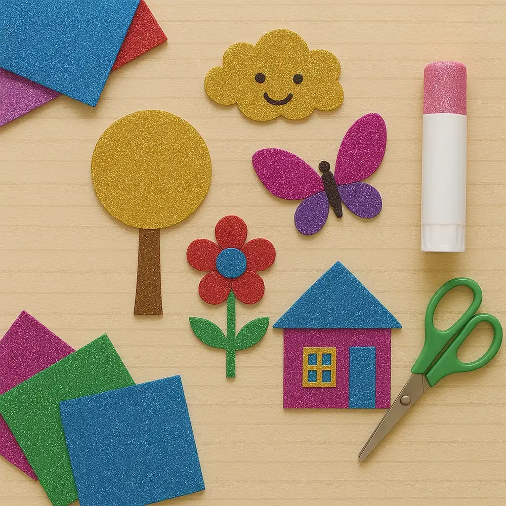 Simli Karışık A4 Eva Tabaka Eva tabaka süngerimsi bir yapıya sahip olan esnek ve hafif bir malzemedir. Bu ürünler nemden kolay etkilenmezler. Rahat bir kullanım sunduğu için çocukların el işi çalışmalarında tercih edilir. Eva Tabaka Kullanım Alanları: Okullarda el işi projelerinde, Hobi çalışmaları yaparken, Ambalajlama tercihlerinde, Çeşitli dekorasyon hazırlıklarında kullanıma uygundur.