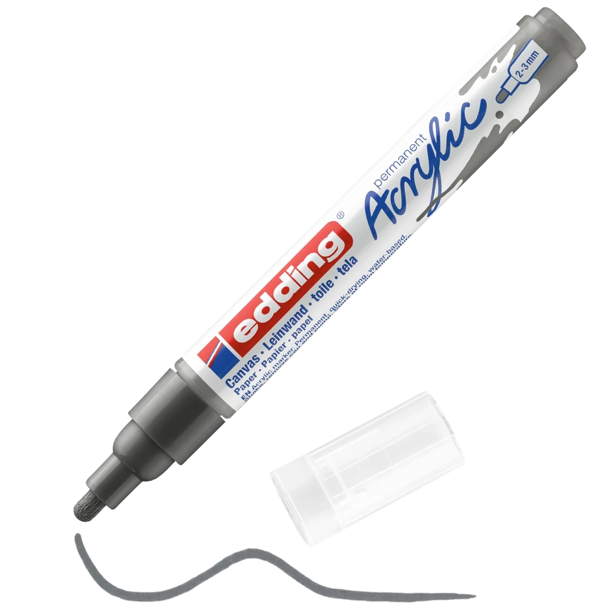 Tuval veya kağıt gibi resim malzemeleri için ideal, açık veya koyu yüzeylerde resim yapmak için akrilik markör Yuvarlak uç kalınlığı: 2-3 mm Birinci sınıf pigmentli su-bazlı akrilik boya, opak, ışığa dayanıklı, kokusuz, kuruduktan sonra kalıcıdır 26 farklı renk seçeneği mevcuttur Renkler, edding 5200 permanent sprey renkleriyle birleştirilebilir Uygun yedek uçlar (edding 5100 yedek uçlar) mevcuttur