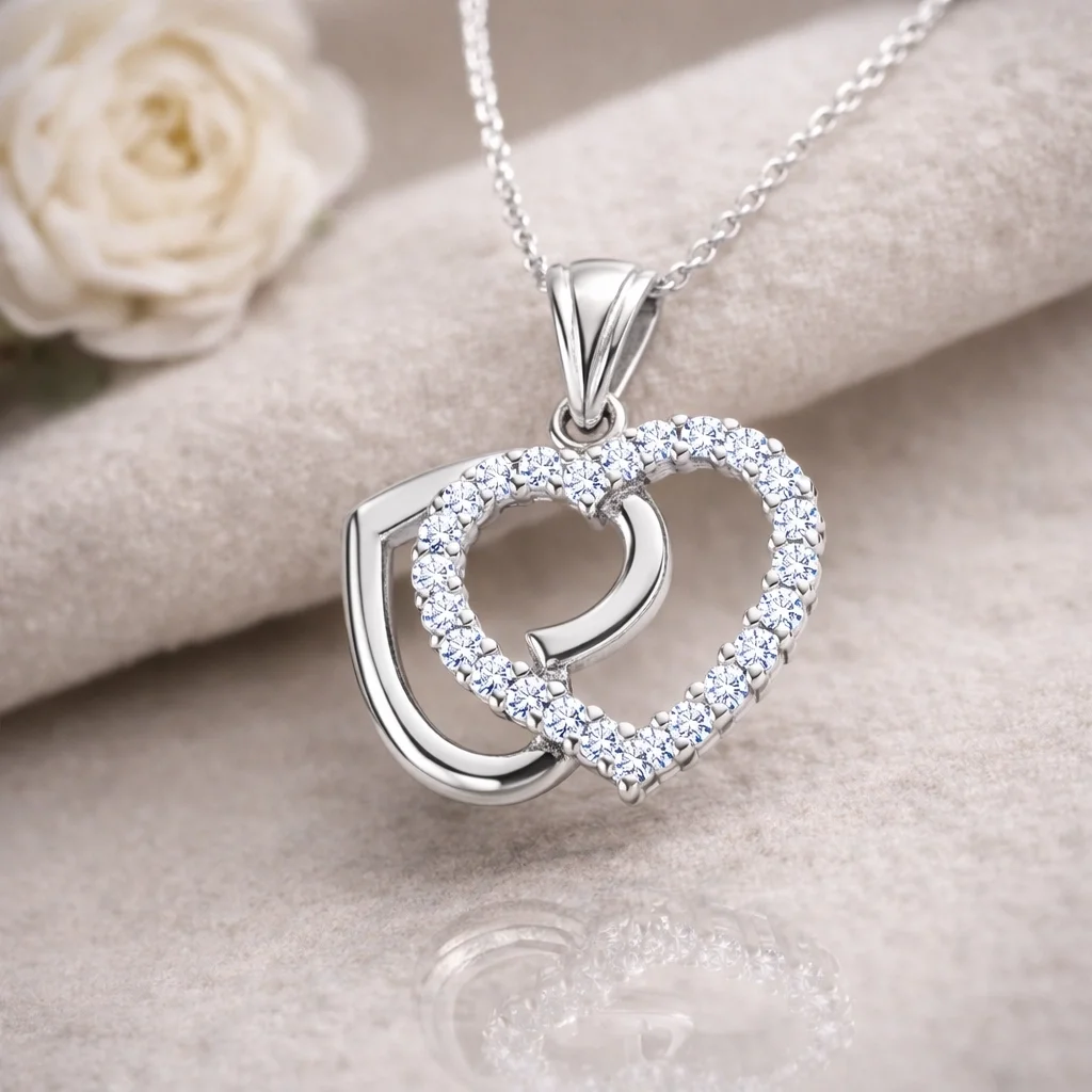 Biri taşlı biri taşsız olan iki tane kalpten oluşan bu harika tasarım kalp kolye modeli 925 ayar gümüşten imal edilmiştir. Kalp tasarımlı kolyeler aşkı çağrıştırır. Bu yüzden gümüş zirkon taşlı çift kalp kolye sevdiğinize güzel bir hediye seçeneği de olabilir. Kolye üzerinde zirkon taşlar kullanılmıştır. Oksitlenmesi gecikmesi ve parlaklığı uzun süre muhafaza etmesi için de rodyum kaplama yapılmıştır. Rodyum kaplama yapılan gümüş bayan kolye modelleri parlaklığını uzun süre muhafaza eder. Ortalama 45 cm. uzunluğunda gümüş zinciri vardır. Bu gümüş zirkon taşlı kalp kolye el emeği ile üretilmiştir. Gümüş ve değerli taşlar nedeniyle belirtilen ürün ağırlığında ± %10 sapma olabilmektedir.