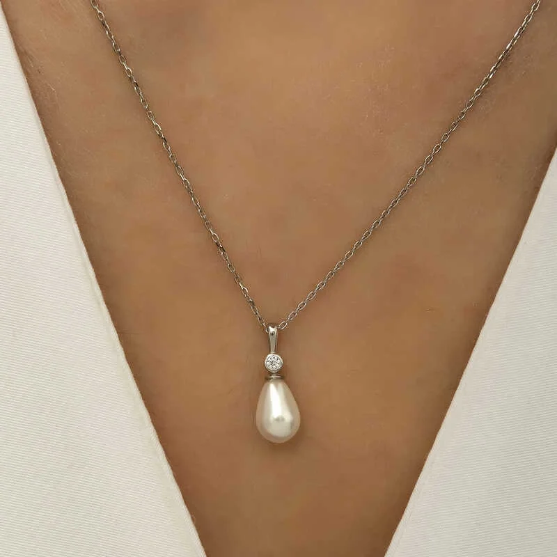 Gümüş Damla İnci Bayan Kolye