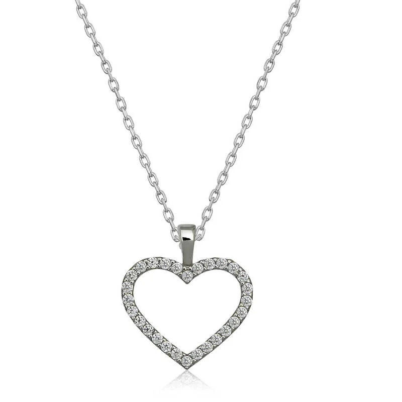 Kalp deseninin hepsi taşlı olan bu harika tasarım kalp kolye modeli 925 ayar gümüşten imal edilmiştir. Kalp tasarımlı kolyeler aşkı çağrıştırır. Bu yüzden gümüş kalp kolye güzel bir hediye seçeneği de olabilir. Bu kolye üzerinde zirkon taşlar kullanılmıştır. Gümüşün üzerine oksitlenmesinin gecikmesi ve parlaklığını uzun süre muhafaza etmesi için rodyum kaplama yapılmıştır. Tamamen gümüş olan zincir uzunluğu ortalama 45 cm’dir. Bu bayan kalp kolye modeli diğer gümüş bayan kalp kolye modellerinde olduğu gibi el emeği ile üretilmiştir. Gümüş ve değerli taşlar nedeniyle belirtilen ortalama ürün ağırlığında ± %10 sapma olabilmektedir.