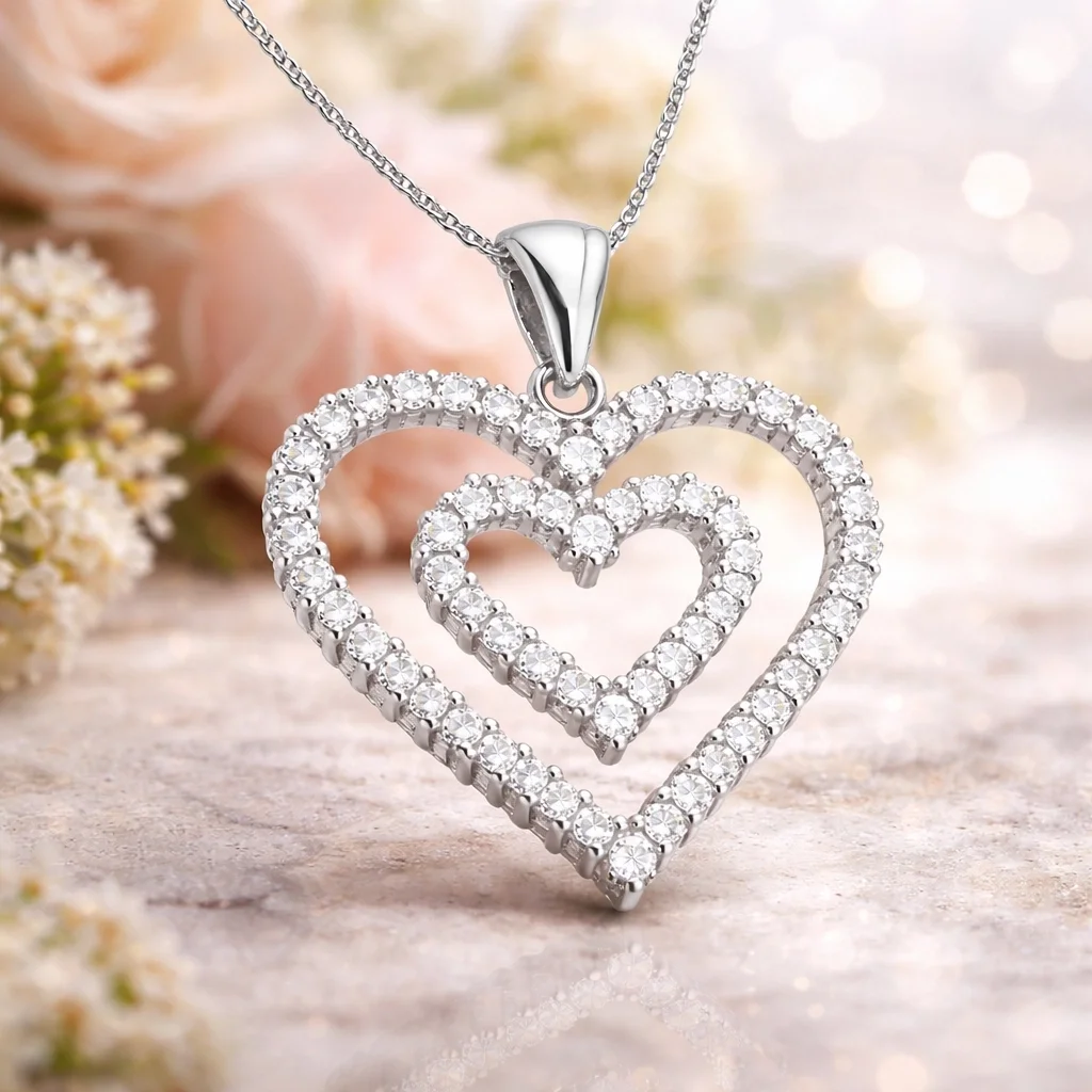 Gümüş Kalpli Bayan Kolye