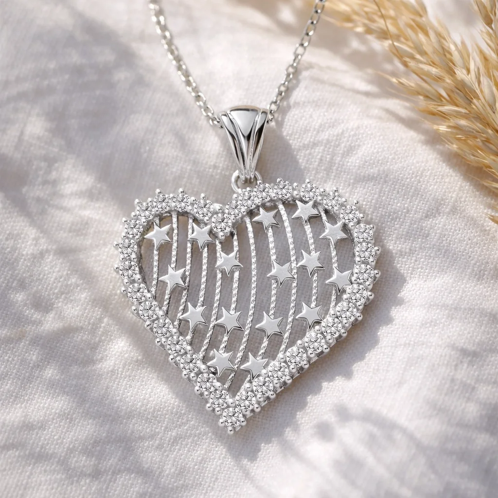 Gümüş Kalpli Bayan Kolye