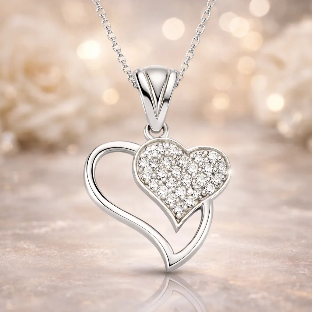 Gümüş Kalpli Bayan Kolye