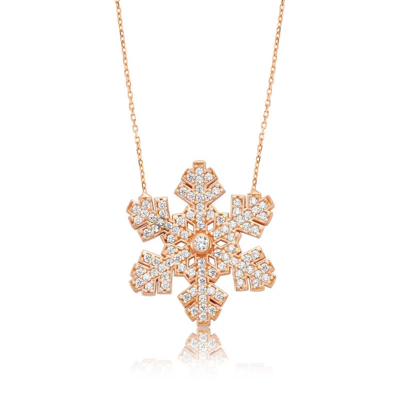 Kar yağdığında yere düşen her kar tanesi birbirinden farklıdır. Yani her bir kar tanesi eşsizdir. Sizde sevdiğinizin yeryüzünde tek olduğunu düşünüyorsanız bu kar tanesi bayan kolye çok anlamlı bir hediye olacaktır. Kar tanesi bayan kolye modeli 925 ayar gümüşten imal edilmiştir. Gümüş üzerine rose altın kaplama yapılmıştır. Rose altın kaplama yapılan gümüş bayan kolye modelleri parlaklığını uzun süre muhafaza eder ve oksitlenmesi gecikir. Kolye üzerinde bulunan beyaz taşlar zirkondur. Gümüş olan zincir boyu ortalama 45 cm"dir. Gümüş kar tanesi bayan kolye modeli diğer gümüş bayan kolye modellerinde olduğu gibi el emeği ile üretilmiştir. Gümüş ve değerli taşlar nedeniyle belirtilen ürün ağırlığında ± %10 sapma olabilmektedir.