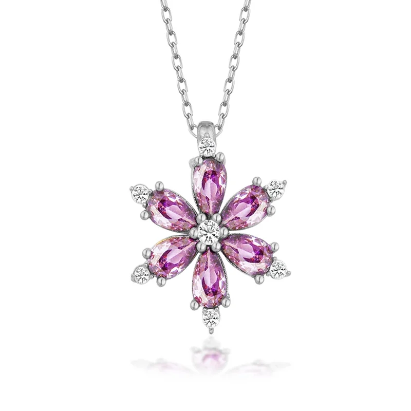 Gümüş Mor Lotus Çiçeği Kadın Kolye