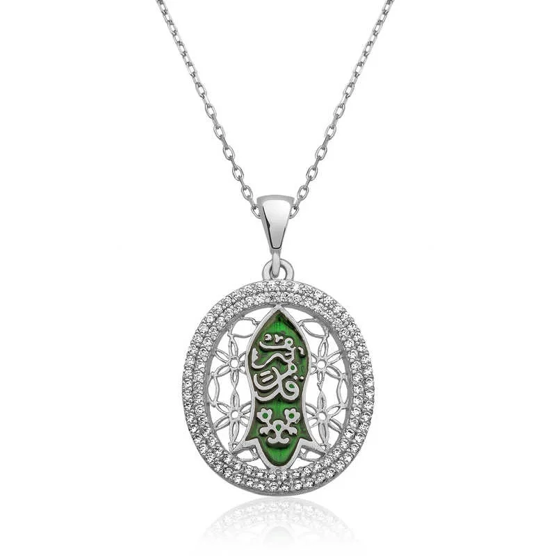 Kademi Şerif Hz. Muhammed’in ayak izidir. Nalı Şerif olarak da bilinir. Bu anlamda manevi değeri yüksek olan bu kolye severek kullanabileceğiniz ve sevdiklerinize verebileceğiniz güzel bir hediye olacaktır. Bu şık kolye tasarımı 925 ayar gümüşten imal edilmiştir. Gümüş üzerine rodyum kaplama yapılmıştır. Rodyum kaplama yapılan gümüş bayan kolye modelleri parlaklığını uzun süre muhafaza eder, oksitlenmesi gecikir. Kolye üzerinde bulunan taşlar zirkondur. Kolyenin zinciri 925 ayar gümüşten imal edilmiştir boyu ortalama 45 cm"dir. Tüm bayan kolye modellerimizde olduğu gibi Kademi Şerif bayan gümüş kolye de el emeği ile üretilmiştir. Gümüş ve değerli taşlar nedeniyle ürün ağırlığında ± %10 sapma olabilmektedir.