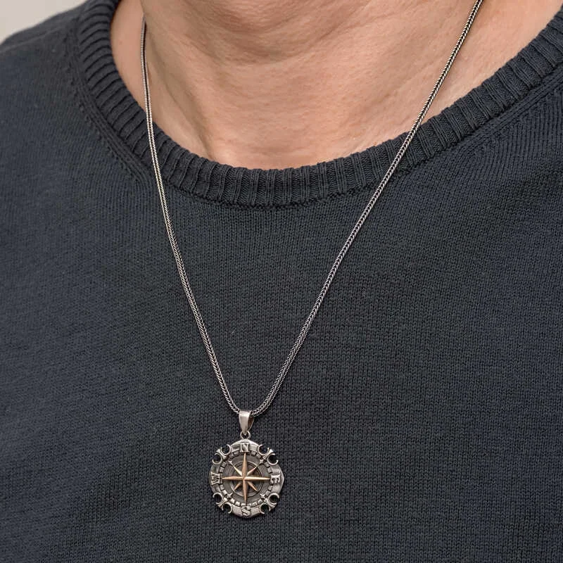 Pusula,yön bulma ve doğru yolda ilerleme sembolüdür. Hayatta doğru yönü bulmak, hedeflere ulaşmak ve rehberlik arayışını temsil eder."Benim yönümde, yolumda sensin" diyenlerin tercihi pusula kolye sizleri bekliyor.Pusula kolye modeli 925 ayar gümüşten imal edilmiştir.Bu şık kolye; doğum günü hediyesi,sevgililer günü hediyesi veya hediye olarak özel günlerde tercih edebilirsiniz.Gümüş üzerine oksit kaplama yapılmıştır.Oksit kaplama yapılan gümüş kolyeler parlaklığını uzun süre muhafaza eder.Tüm kolyelerde olduğu gibi bu gümüş pusula kolye de tamamı el emeği ile üretilmiştir.Gümüş ve değerli taşlar nedeniyle belirtilen ortalama ürün ağırlığında ± %10 sapma olabilmektedir.