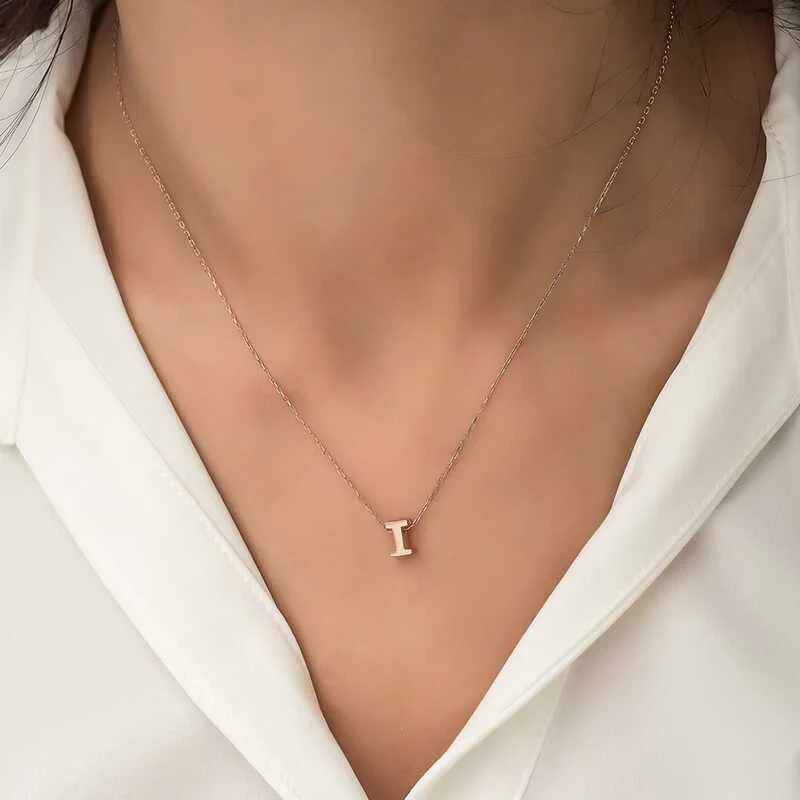 Gümüş Rose 3 Boyutlu I Harf Bayan Kolye