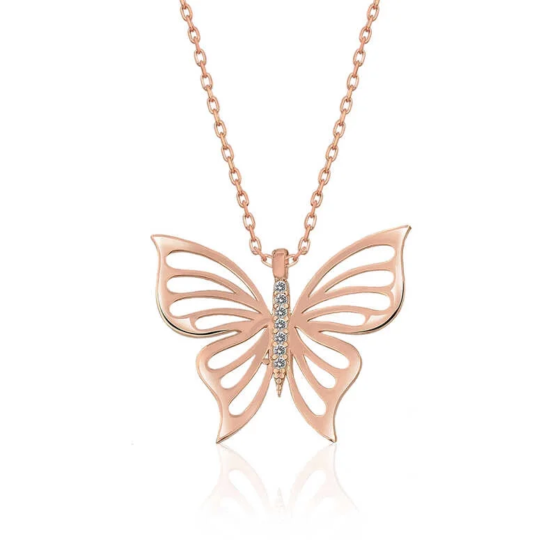 Gümüş Rose Bahar Kelebeği Bayan Kolye