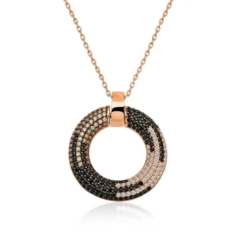 Halka detayı ile göz kamaştıran kolye; zarifliğinizi ve şıklığınızı daimi kılmanıza yardımcı oluyor. Yenilikçi dokunuşlarla tasarlanmış bu kolye, özel gün ve gecelerde kombinlerinize eşlik edecek hoş bir üründür. Siz de bu şık kolyeyi, takı koleksiyonunuza dahil edebilirsiniz. Halka bayan kolye; 925 ayar gümüşten imal edilmiştir. Gümüş üzerine rose altın kaplama yapılmıştır. Üzerinde bulunan taşlar zirkondur. Diğer kolyelerde olduğu gibi gümüş halka bayan kolye de el emeği ile üretilmiştir. Gümüş ve değerli taşlar nedeniyle belirtilen ortalama ürün ağırlığında ± %10 sapma olabilmektedir.