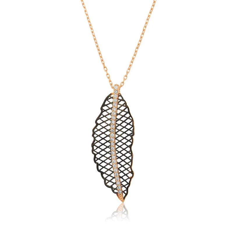Gümüş Rose Yaprak Bayan Kolye