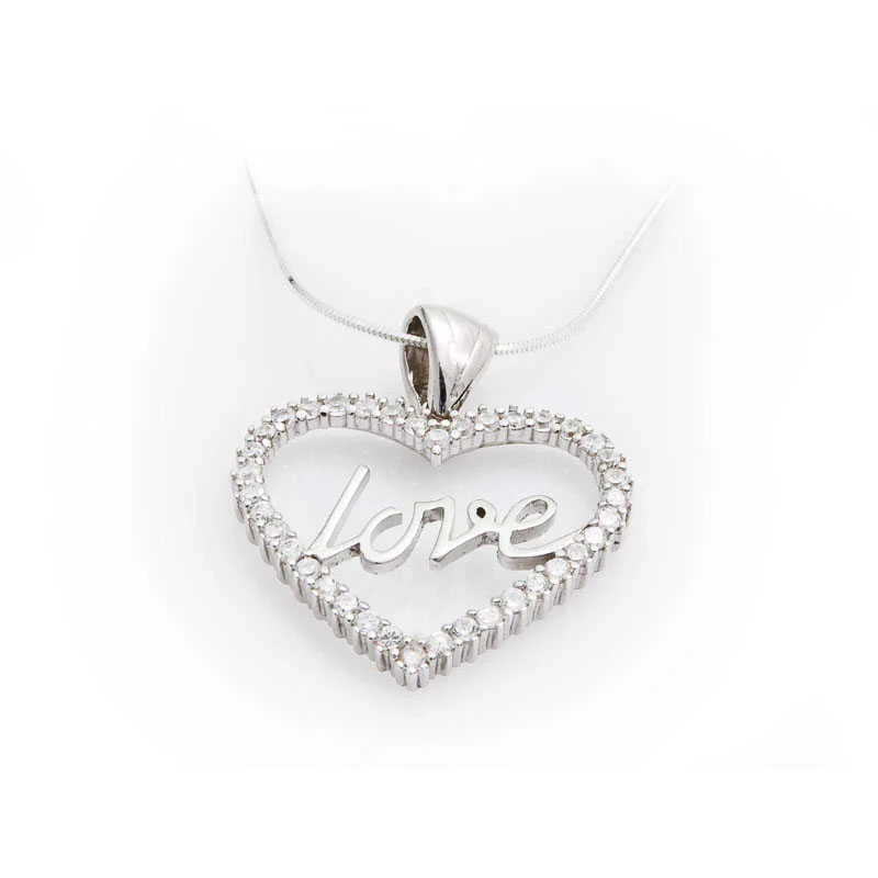Gümüş Taşlı Love Bayan Kolye
