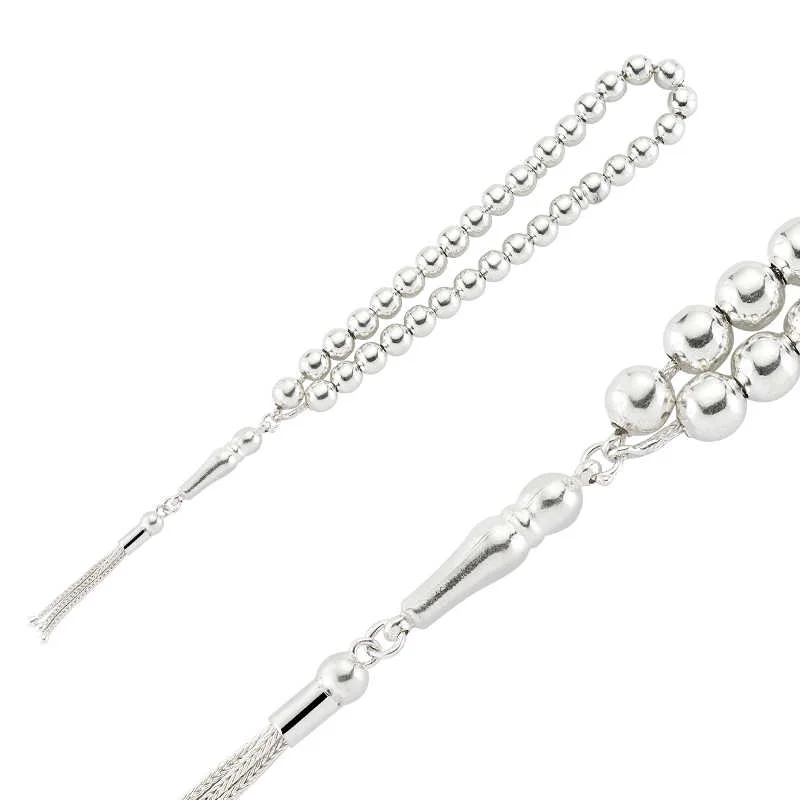 Bu şık tesbih 1000 ayar gümüşten imal edilmiştir. Gümüş tesbih üzerine gümüş kaplama yapılmıştır. Bu kaplamadan yapılan tesbihler parlaklığını uzun süre muhafaza eder, oksitlenmesi gecikir. Gümüş tesbihi severek kullanabilir; doğum günü, sevgililer günü veya babalar gününde ya da özel günlerde hediye olarak tercih edebilirsiniz. Ürünlerimizin tamamı el emeği ile üretilmiştir. Gümüş ve değerli taşlar nedeniyle belirtilen ortalama ürün ağırlığında ± %10 sapma olabilmektedir.