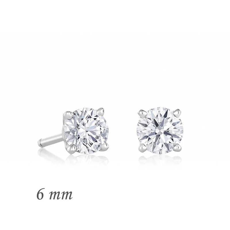 Gümüş Yuvarlak Tek Taş Zirkon Küpe - 6 mm.