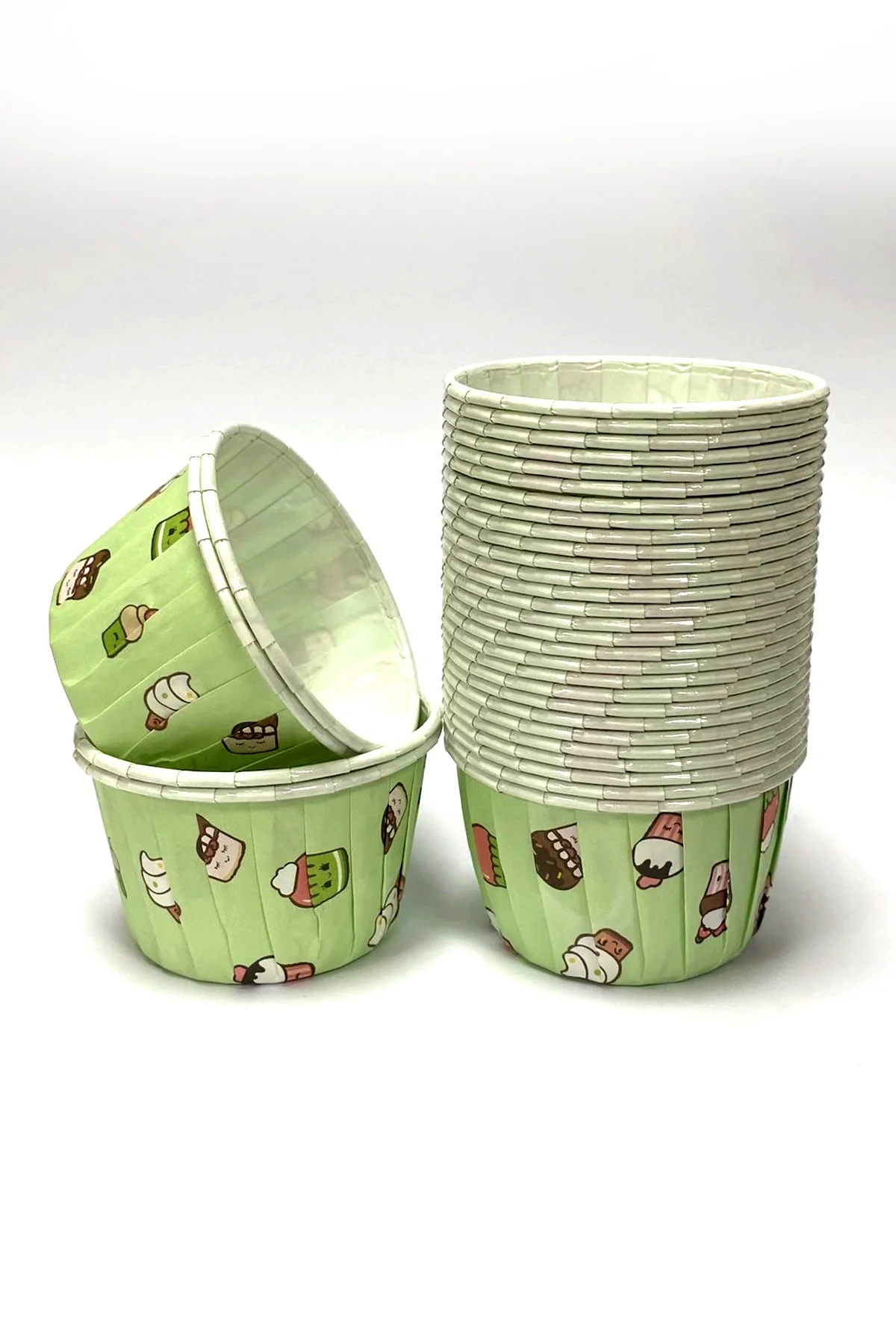 Supertrend Kağıt Muffin Kek Kapsülü Dondurma Desenli 50li Parti, davet ve organizasyonlarda sofralara renk katmak için ideal bir üründür. Fırında kek ve benzeri ürünlerin pişirilmesi için kullanılabilir. Sıcak ve soğuk yiyeceklerin şık bir şekilde sunulmasını sağlar. 5 cm taban çapı, 6,5 cm ağız çapı ve 3,5 cm yüksekliği ile standart muffin boyutlarına uygundur. Pakette 50 adet muffin-kek kapsülü bulunmaktadır.