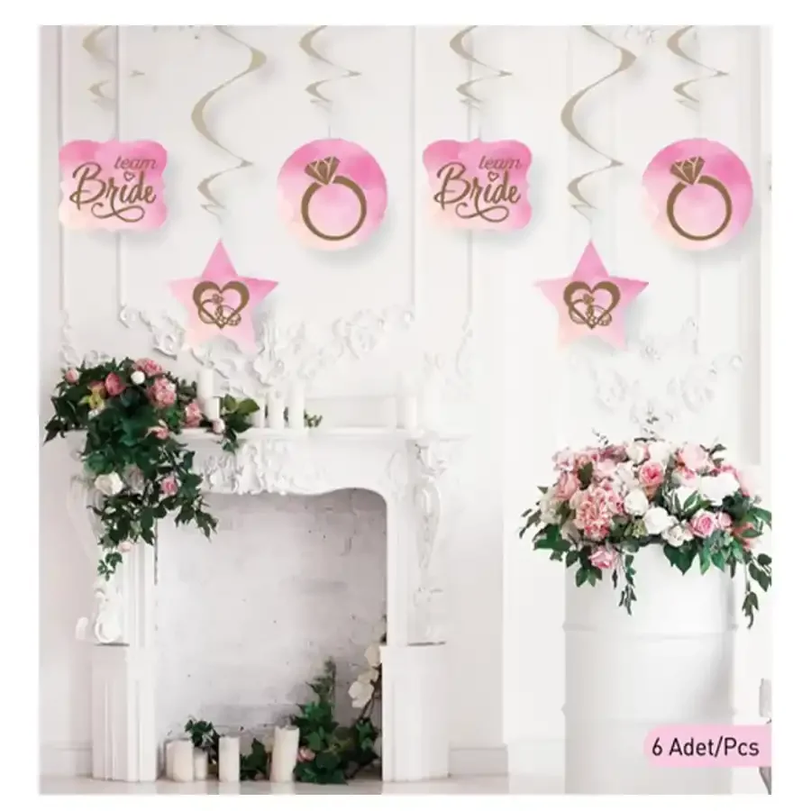 Team Bride Spiral Sarkıt Süs • Organizasyonlarınıza renkli bir dokunuş katmak için team bride temalı spiral sarkıt süs harika bir üründür! • Ürün Ölçüsü: Bulut Süs: 16,5 x 16,8 cm - Yıldız Süs: 16,4 x 15,6 cm - Balon Süs: 13,7 x 15,4 cm - Spiral: 60 cm • Materyal : Kağıt • Paket İçi Miktar : 6 Adet